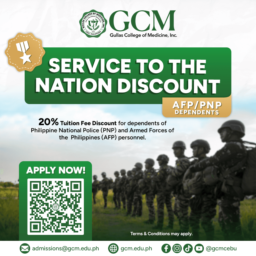 Gullas College of Medicine (GCM), founded in 1977 by Don Vicente Gullas and Lady Josefina R. Gullas in Banilad, Mandaue City, addresses the medical and health needs of the Philippines by producing compassionate, competent physicians, with a focus on students from Visayas and Mindanao.